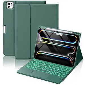 for iPad Pro 11-inch Case with Keyboard (M5/M4) - Magnetic Wireless Detachable Keyboard with Multi-Touch Trackpad 7 Colors Backlit Stain Proof Folio Cover for Pro 11 Inch 2025 2024 - Pine Green