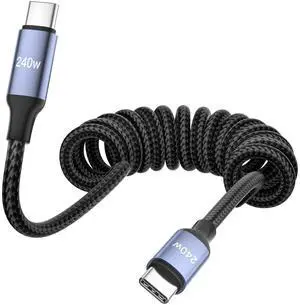 240W USB C to USB C Cable Coiled, Braided Type C Charger for Car 240W Fast Charging Cord Compatible with iPhone 17 16 15, iPad, Samsung Galaxy, Google Pixel, Moto, LG, TCL Phones
