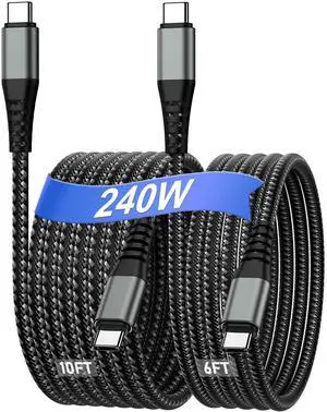 USB C Cable, 240W PD 5A Fast Charging USBC to USBC Cable, Zine Alloy Nylon Braided Type C Charger Cord for iPhone 17 16 Pro/Plus/Pro Max, MacBook, iPad Pro/Mini, Samsung S23/S22+ (10ft)