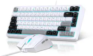 Snpurdiri Wired Keyboard and Mouse Combo,81 Keys Compact Mechanical Keyboard,Retro Round Keycaps Ice Blue Backlit Gaming Keyboard for Laptop,Easy to Carry on Business Trip (Black Grey White)