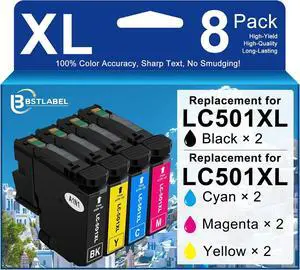 LC501XL Ink Cartridges Combo Pack Replacement for Brother LC501 XL High Yield Compatible for MFC-J1260DW MFC-J1360DW MFC-J1410DW Printer (8 Pack-2 Black/2 Cyan/2 Magenta/2 Yellow)
