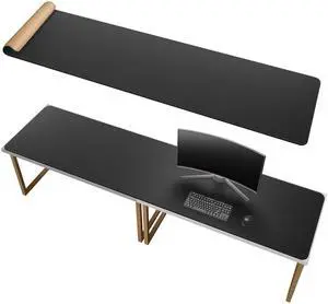 Chihein 79 x 20 Cork & PU Leather Desk Mat (Black) - Huge Mouse Pad, Double Sided Waterproof Desk Pad Protector for Gaming, Office, Home