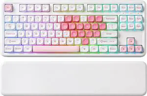 YUNZII B87 Wireless Mechanical Keyboard,QMK/VIA Programmable,TKL Layout 87 Keys,BT/2.4G/USB-C,Hot Swap Gasket Mount RGB Backlit Gaming with Wrist Rest for Win/Mac (White Heart, Cocoa Cream V2)