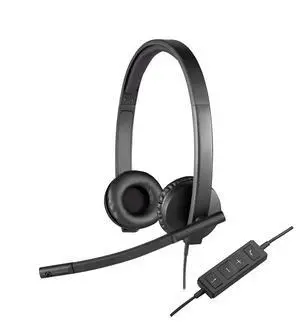 H570e Wired Headset, Stereo Headphones with Noise-Cancelling Microphone, USB, In-Line Controls with Mute Button, Indicator LED, PC/Mac/Laptop - Black
