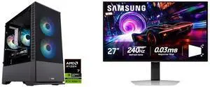 ABS Cyclone Ruby Gaming PC - Windows 11 - AMD Ryzen 7 9700X - GeForce RTX 5060 Ti 16G - DLSS 4 - AI-Powered Performance - 32GB DDR5 6400MHz - 1TB M.2 SSD SAMSUNG Odyssey G8 27" UHD 4K 240Hz AMD FreeSync Premium Pro 0.03ms HDR400 OLED Glare
