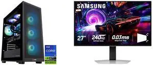 ABS Cyclone Aqua Gaming PC - Windows 11 - Intel Core i7-14700F - GeForce RTX 5060 - DLSS 4 - AI-Powered Performance - 32GB DDR5 6400MHz - 1TB M.2 NVMe SSD SAMSUNG Odyssey G8 27" UHD 4K 240Hz AMD FreeSync Premium Pro 0.03ms HDR400 OLED Glare
