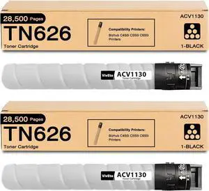 TN626 TN-626 TN628 TN-628 Black Toner Cartridge ACV1130 TN626k TN628k Toner Cartridges Compatible for Konica Minolta bizhub C450i C550i C650i Printer (2 Pack)