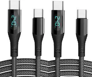 240W/5A 2Pack 4Feet & 6.6 Feet Braided USB C to C Cable Super Fast Charge Type-C Cord PD Charging Cables with Display 480Mbps Compatible with iPad MacBook Galaxy S21/S10/S9/Plus