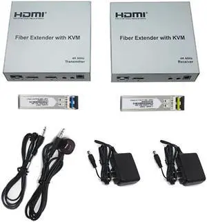 4K 60Hz 20Km HDMI KVM Fiber Extender by LC Fiber Cable HDMI Fiber Optical USB KVM Extender Video Audio Transmitter with Loop-out(US Plug)