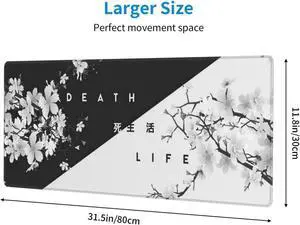 Large Gaming Mouse Pad for Desk, Black Plum Blossoms XXL Mouse Pad, 35.4x15.7 Inch, Waterproof, Non-Slip Rubber Base