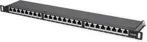 Intellinet Cat6a Shielded Desktop Patch Panel, 24-Port, FTP, 19", 0.5 U, 90° Top-Entry Punch-Down Blocks, Black