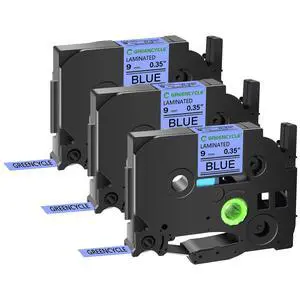 GREENCYCLE TZe-521 9mm 0.35 Laminated Blue Tape Compatible for Brother P-Touch Black on Blue TZ-521 TZe521 3/8 inch TZe TZ Tape for Ptouch PT-D210 D220 H110 H100, 3 Pack