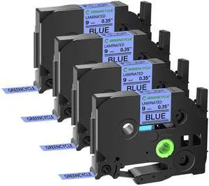 GREENCYCLE TZe-521 9mm 0.35 Laminated Blue Tape Compatible for Brother P-Touch Black on Blue TZ-521 TZe521 3/8 inch TZe TZ Tape for Ptouch PT-D210 D220 H110 H100, 4 Pack