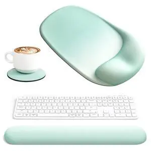 Wrist Rest for Keyboard and Mouse Ergonomic Mouse Pad with Wrist Support Memory Foam Wrist Rest for Computer Keyboard,3-in-1 Gel Mouse and Keyboard Pad for Office Green Gradient