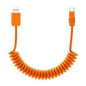 Curly Chubby 120W Coiled USB C Fast Charging Cable Durable Braided Charger Cord for Car Compatible with iPhone 17-15 Series iPad, Orange+Orange, USB-A to Type-C, 2.13FT-6.56FT