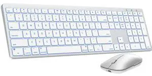Bluetooth Keyboard and Mouse for Mac 7-Color Backlit, Multi-Device, Rechargeable, Full-Size Wireless Keyboard Mouse Combo with Quiet Scissor-Switch Keys & Tilt Legs for Mac (Silver White)