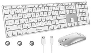 Bluetooth Keyboard and Mouse, Wireless Keyboard Mouse Combo, 3 Multi-Device Connection Full Size Ultra-Slim Keyboard with Number Pad for Windows/Mac,White & Silver