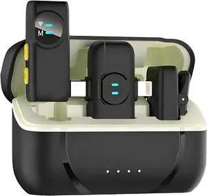 3 in 1 Microphone for iPhone/Android/Camera, Wireless Microphones, 328ft Transmission, 18H Battery Life, Mini Microphone for Record Interview, Vlogs, Tiktok