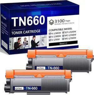 TN660 TN-660 High Yield Black Toner Cartridge Compatible TN660 TN-660 Toner Cartridge Replacement for Brother TN660 TN-660 HL-L2305W HL-L2380DW DCP-L2540DW, (TN660 2PK)