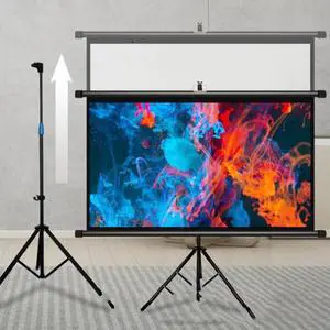 Projector Screen with Tripod Stand60/80/92 Inch 16:9 4K Portable Home Projection Screen, Easy Pull Assemble SystemAdjustable Screen Height(60-inch 16:9)
