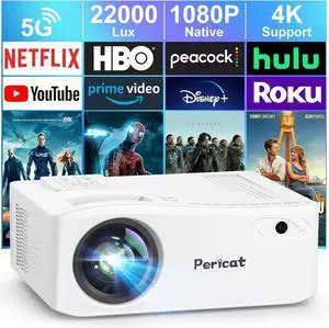 Pericat 5G WiFi Bluetooth Projector, Native 1080P Movie Projector, Outdoor Movie Projector with 350" Display, 22000L Home Theater Projector, 2024 Upgraded Projector Compatible with TV Stick, Phone/PC