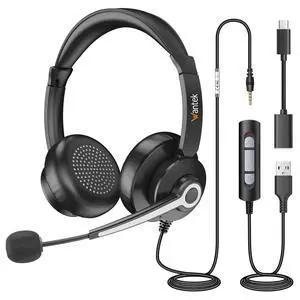 USB Headset with Microphone for PC, Computer Headset with Microphone Noise Cancelling for Laptop, 3.5mm Jack On-Ear Wired Headphones with Mic, Volume Control for Call Center/Skype/Zoom/Webinar