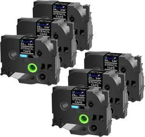 6PK Compatible for Brother P-Touch Stencil Tape ST151 STe151 ST-151 STe-151 1" 24mm x 3m Black on Clear Non-Adhesive Stamp Etch Label for Ptouch PT-P750WVP PT-P900W PT-P950NW Label Maker