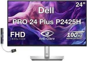 Dell PRO 24 Plus 24" FHD IPS Monitor with 5ms Response Time, Anti-Glare, Flicker Free, VESA Mount, Displayport, HDMI & Dockztorm USB Port Expander, Black/Silver Color (P2425H)