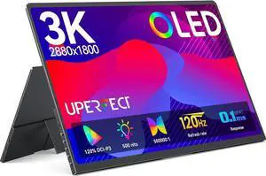 UPERFECT 14" 3K OLED Portable Monitor, 2880x1800 120Hz 0.1ms Gaming Display, 500nits 120% DCI-P3 HDR, Ultra-Slim External Monitor for Laptop, PC, Phone, PS5 & Xbox