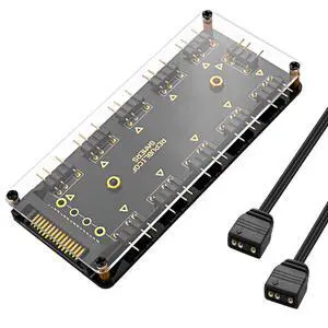 MAYWILLA 5V 3Pin ARGB LED Hub Controller,10 Way 5V 3 Pin RGB LED Splitter SATA Power Extension Cable Adapter with 50CM Extension Cord for Extended Motherboard Interface