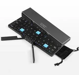 Zunate Foldable Bluetooth Keyboard, Portable Pocket Size with Universal Stand, Rechargeable Tri Wireless Keyboard for Laptop, Tablet (Black Gray)