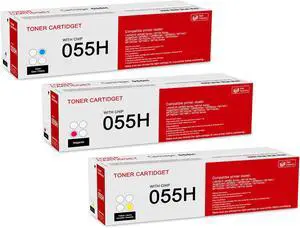 3 Pack 055H C/M/Y Toner Cartridge: Compatible CRG-055H Replacement for Canon 055H i-SENSYS LBP660 MF740 Series ImageClass LBP660C LBP664Cdw LBP664Cx MF740C MF742Cdw MF746Cx MF740 Series Printer