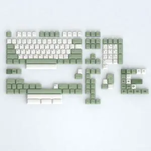 PBT Bamboo Forest Keycaps for Mechanical Keyboard 60% 65% 75% Cherry Profile Green White Keycaps Dye Sub Custom Gaming Keyboard Keycaps for Gateron MX Switches with Key Cap Puller