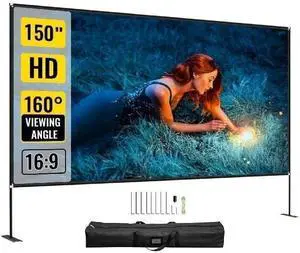 Portable Projection Screen with Stand and Storage Bag, HD Wide Angle for Home and Outdoor Movies