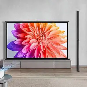 60" Portable Motorized White Projector Screen with Remote HD 4K 3D Movie Screen for Home Theater, Cinema, Office Wall/Ceiling Mount(60in/16:9)