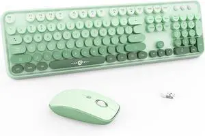 FOPETT Wireless Keyboard and Mouse Combo - 2.4G Full-Sized Cute Colorful Mouse and Keyboard with 104 Round Keys Retro Typewriter Keyboard for Laptop/Windows/PC - Green Gradient