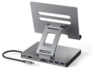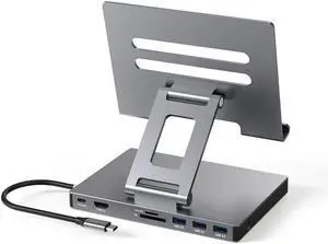 iPad Pro USB C Hub Stand, 9 in 1 Adapter for iPad Air M5 M3 M4 13 12.9 Inch Docking Station 4K 60Hz HDMI, RJ45 Ethernet, SD/TF Card Reader, 3 USB 3.0, 3.5mm Audio, iPad Accessories Samsung Tablet Dock