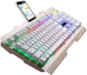 ZGB G700 104 Keys USB Wired Mechanical Feel Glowing Metal Panel Suspension Gaming Keyboard with Phone Holder (Gold)