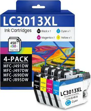 4Pc LC3013XL Ink Cartridge compatible with Brother LC3011 MFC-J491DW MFC-JJ497DW