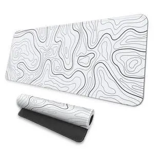 Large Gaming Mouse Pad Black Topographic Contour Mouse Pad Extended XL Long Mousepad Big Desk Mat with Stitched Edges & Nonslip Rubber Base for Company Office Work, 31.5 X 11.8 Inch