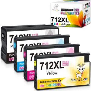MS DEER 712 Ink Cartridges, Upgraded Compatible Replacement for HP 712XL 712 XL High Yield Combo Pack Work for HP DesignJet T210 T630 T650 T250 T230, Studio Plotter Printers (4-Pack, BK/C/M/Y)
