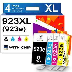 Miss Deer 923 Ink Cartridges XL, Compatible Replacement for HP 923XL 923e HP923 High Yield for OfficeJet Pro 8130e 8120e 8125e 8135e 8138e 8139e 8125 8130 Printer 4-Pack (BK/C/M/Y, with Chip)
