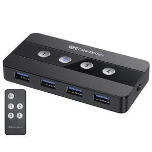 TESmart 4 Port HDMI+Type C KVM Switch 4K@60Hz 4:4:4 Ultra HD HDR 10 | 4x1 USB C KVM Switcher Supports USB 2.0 Devices&L/R Audio Output&IR Remote Control with 4 pcs of 1.5 m KVM Cables-Matt Black