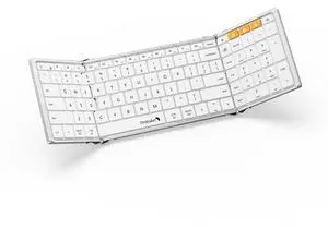 ProtoArc Tri-Fold Bluetooth Keyboard - Folding Wireless Portable Keyboard with Numeric Keypad, Full-Size Travel Keyboards for iPad Tablet Smartphone Laptop PC Windows iOS Android, XK01 - White Silver