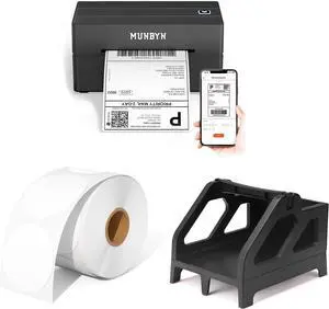 MUNBYN 130B Bluetooth Thermal Label Printer+2 Inch Circle Thermal Sticker Labels+Shipping Label Holder