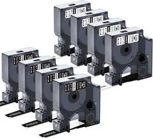 Compatible with DYMO Rhino Labels 18444 1805435, Permanent Vinyl 1/2 Inch, Use for Rhino 4200 5200 6000 3000 Industrial Label Maker, 4X Black + 4X White, Total 8 Pack, 1/2 Inch x18 ft
