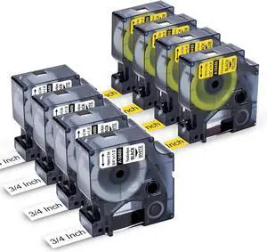 Compatible with Dymo Rhino Flexible Nylon Label Tape, Use for Dymo Rhino 5200 4200 6000 Label Maker, 18489 Flexible Nylon 3/4 Inch Black on White and 18490 Flexible Nylon Label Tape 1/2 Inch Black on