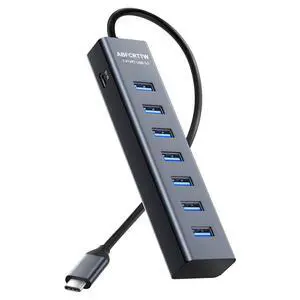 USB C to USB Hub Multiport Adapter, Aluminium 7-in-1 USB C Hub Multiport Adapter, USB Extenders, USB to USB c Adapter for MacBook Pro/Air, Laptop, iPad, iMac, U Flash, PSSD, HDD, Keyboard, Mouse- Brand: ABFCRTTW