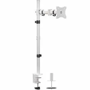White Single Monitor Desk Mount Extra Tall Adjustable Stand for up to 32" Screen
