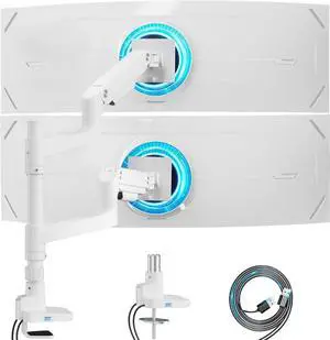 ARES WING Dual Monitor Stand for Ultrawide Heavy Duty Curved Monitor Stacking, Fits 17-49 Inch, Vertical Gas Spring Double Monitor Mount with USB, Adjustable Dual Monitor Mount for Desk, White